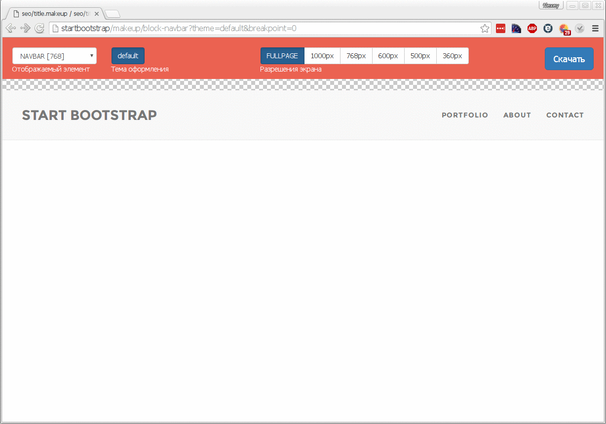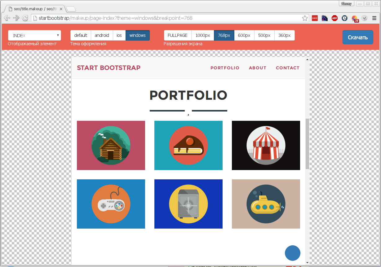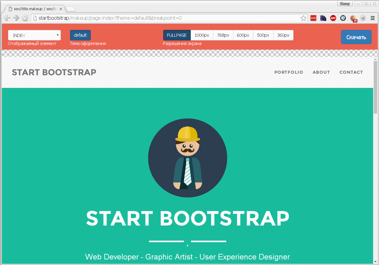Проверяем работоспособность страницы инструмента, для этого перейдем на страницу http://startbootstrap/makeup/, там мы должны увидеть следующую картинку: