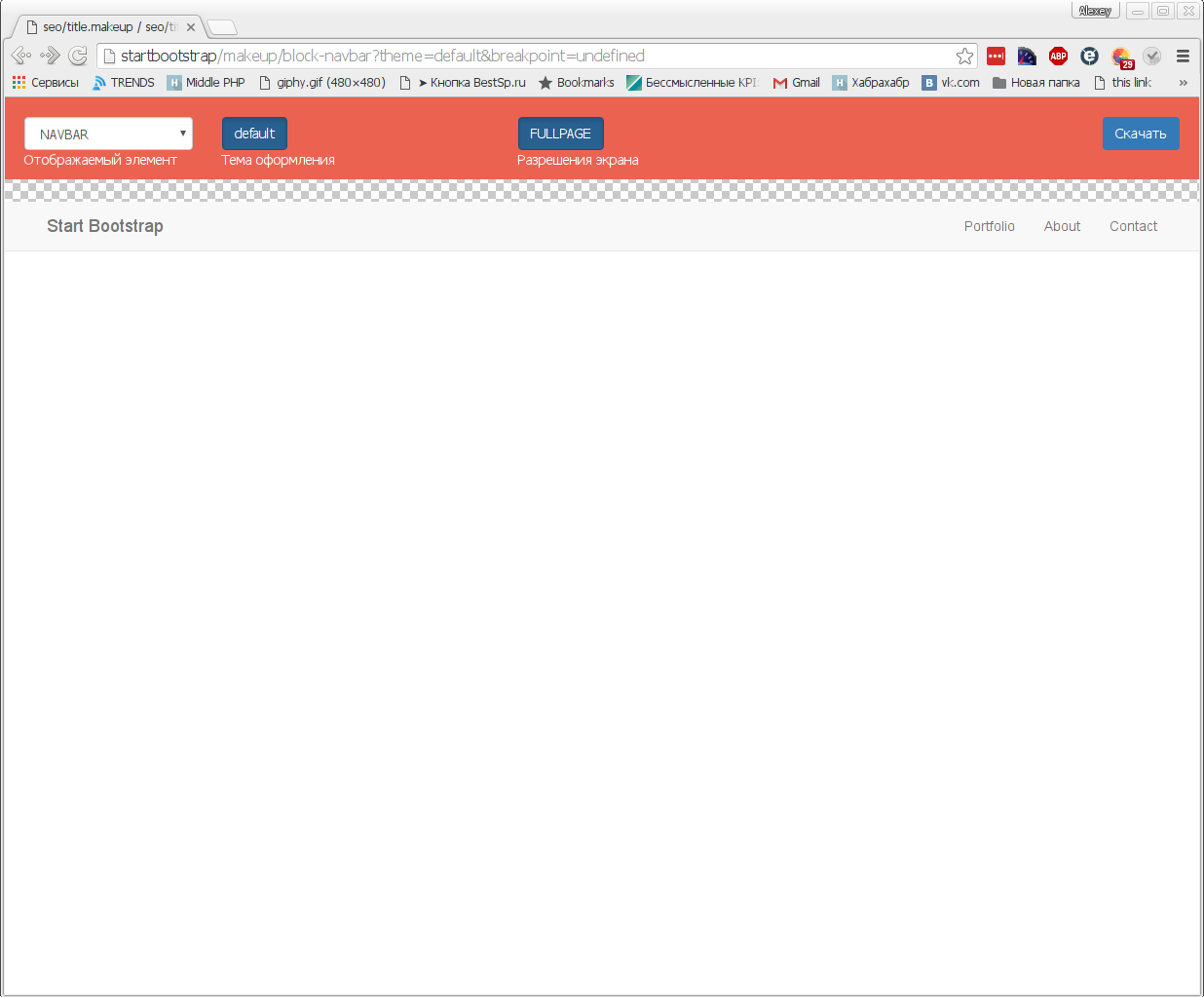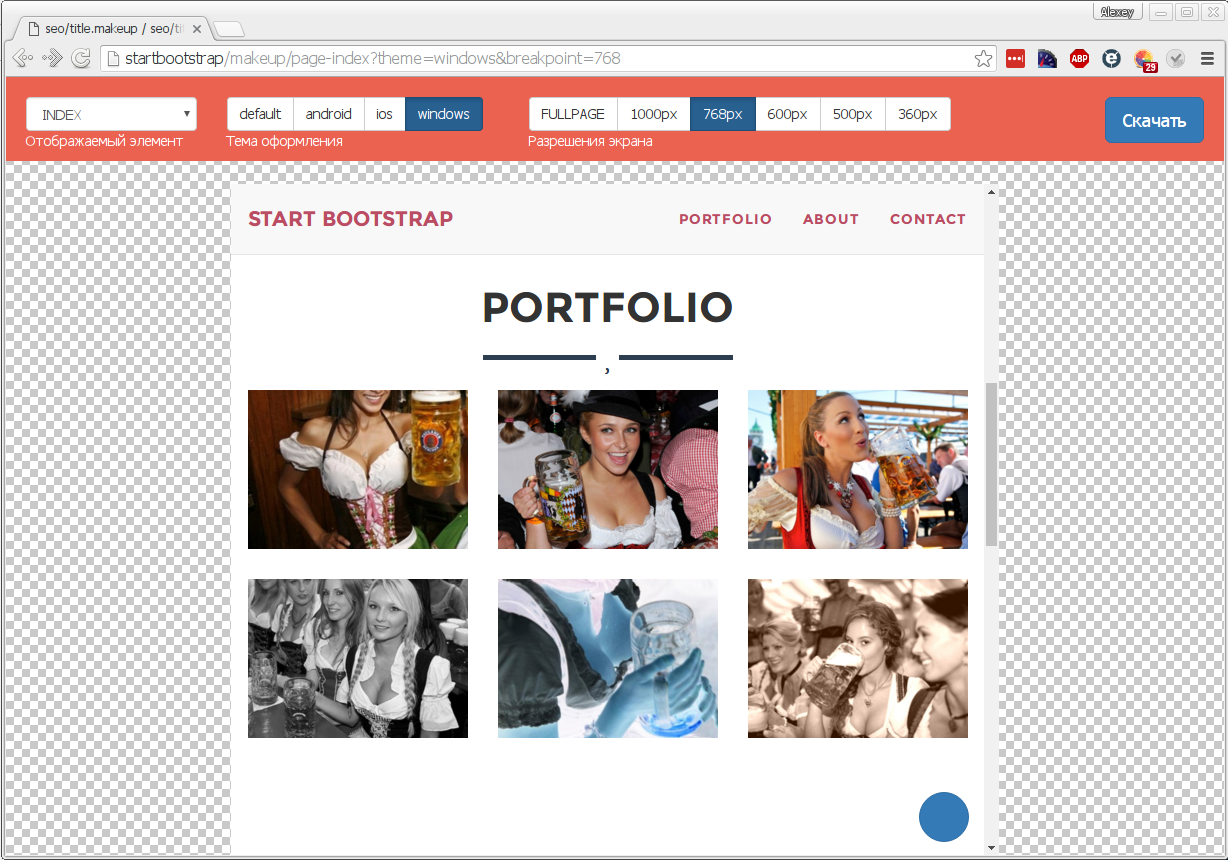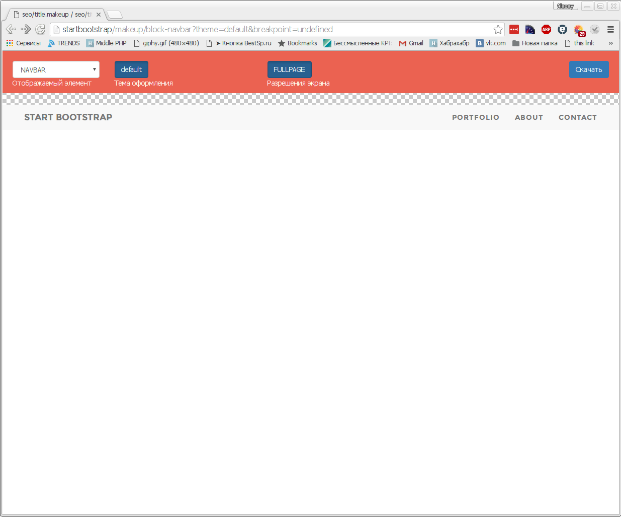 Проверяем работоспособность страницы инструмента, для этого перейдем на страницу http://startbootstrap/makeup/, там мы должны увидеть следующую картинку:
