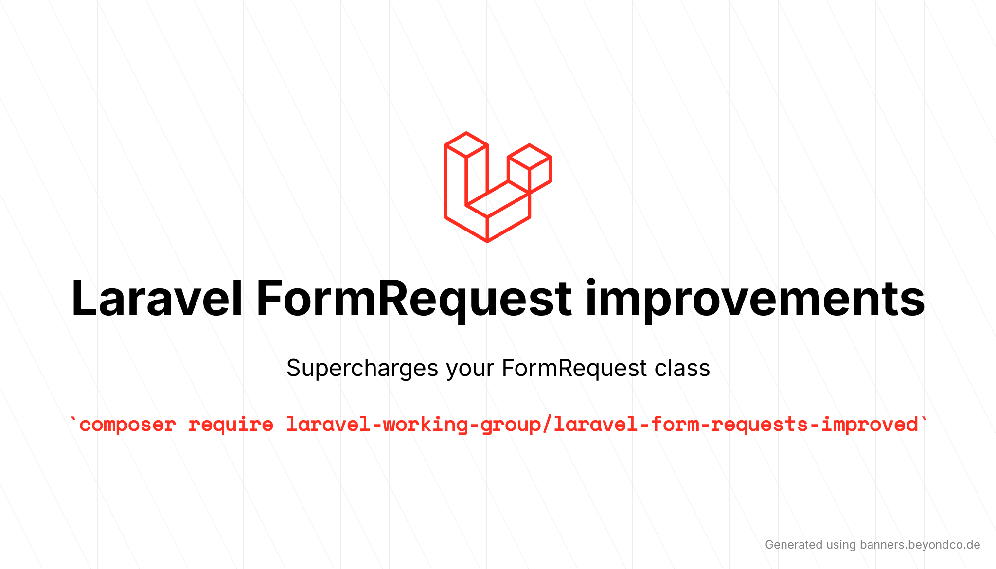 LaravelWorkingGroup\ImprovedFormRequests\Foundation\Http\FormRequestand not from Laravel'sIlluminate\Foundation\Http\FormRequest. Don't worry, it itself extends from Laravel's FormRequest so you can do everything you can also do with Laravel's FormRequest and more.