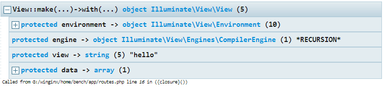 Route::get('/', function() { echo Form::open( '/' ); echo HTML::image( 'img/hello.jpg' ); echo Form::text( Str::upper('hello world!') ); echo Form::close(); echo dd( $_REQUEST ); });