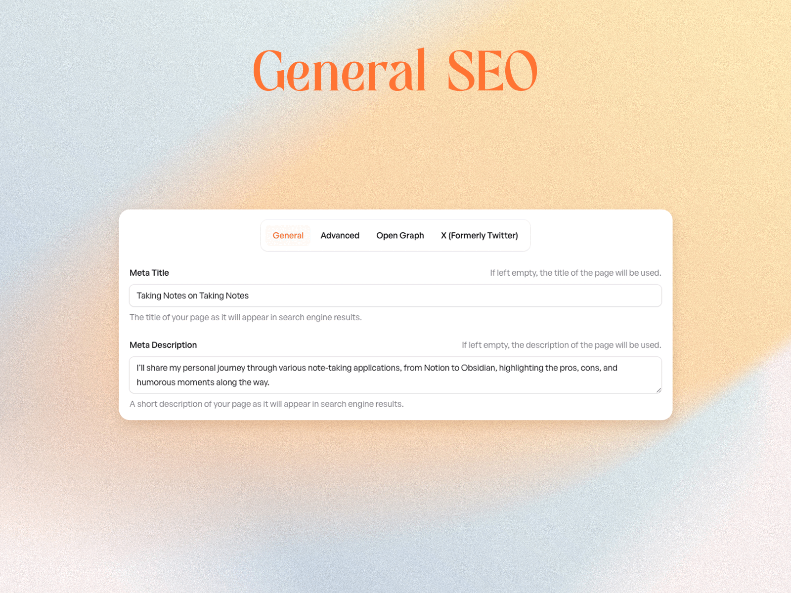 - Ready-to-use form component: Easily add SEO settings to your resources.