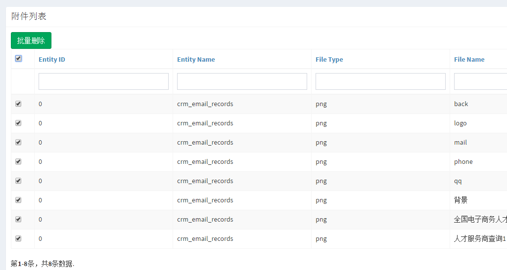 默认使用当前控制器下的ActionDelete 也可以手动指定 /attachment/default/delete ,然后根据主键id实现批量删除