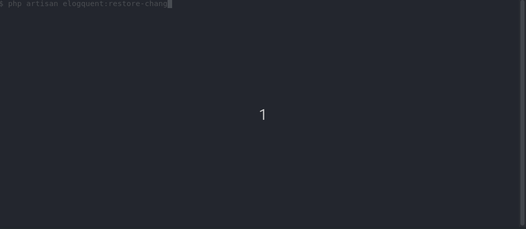 $modelChange = ElogquentEntry::find(1); $modelChange->restore();