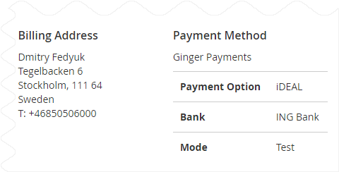 4. The «Order Information» → «Payment Method» block on the frontend order page for an iDEAL payment