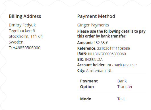 3. The «Order Information» → «Payment Method» block on the frontend order page for a bank transfer payment