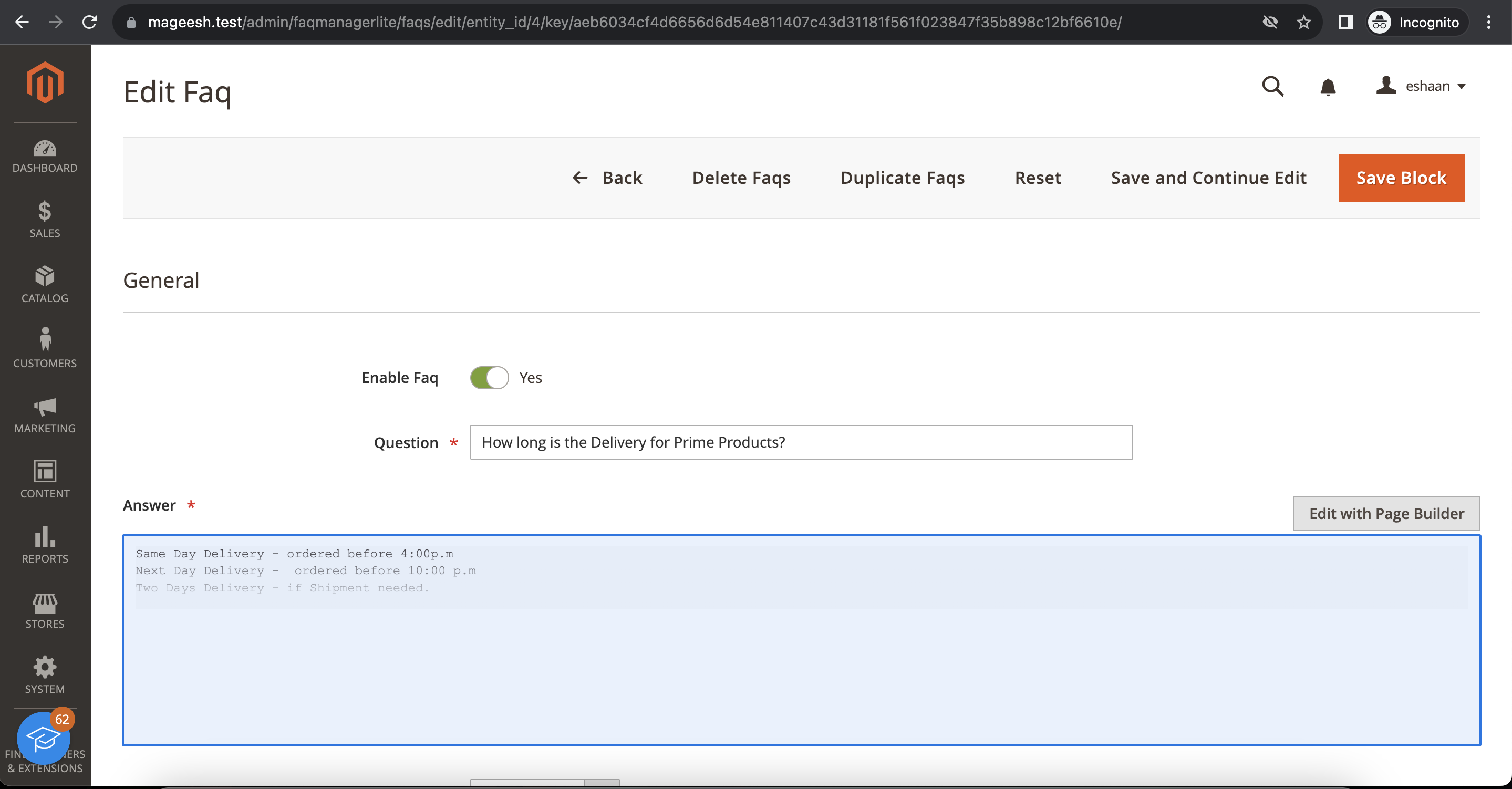 Faq Module comes with the options to do CRUD operations in Admin side.