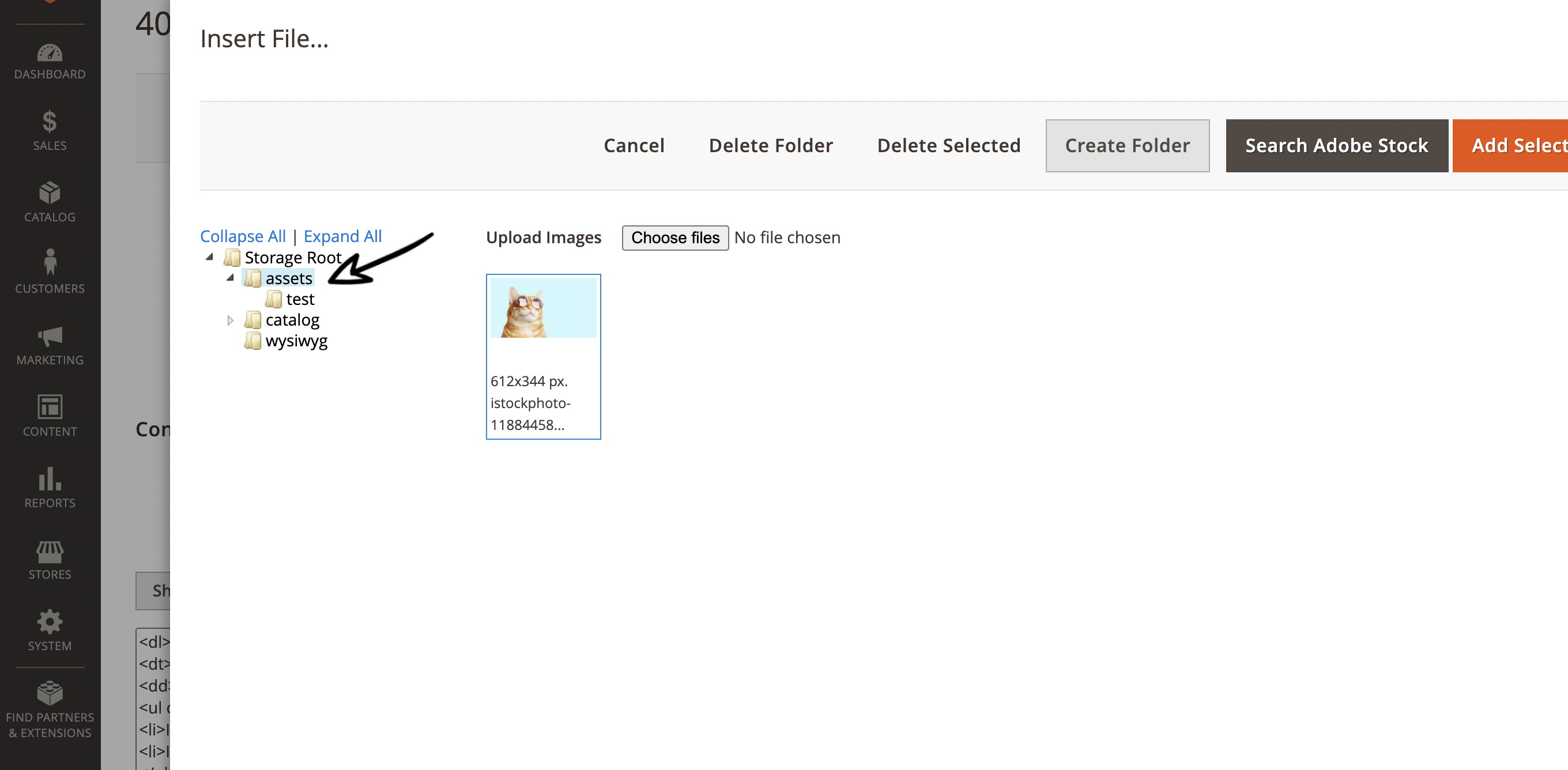 ./app/code/Magenizr/MediaGalleryFolder/. - Enable the module and clear static content.