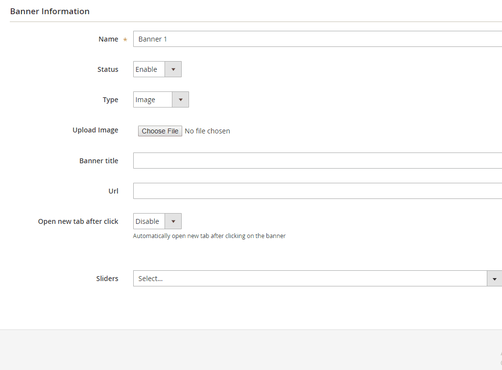 From the Admin Panel, navigate to Content > Banner Sliders > Manage Banners, in the right side, hit Add New button.