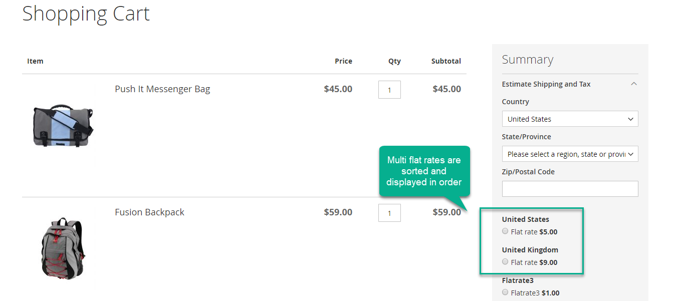 As a store may want to have more than only one flat rate shipping, Multiple Flat Rates Shipping should be in a certain order. Admins can choose this order by sorting every shipping rate on the backend.
