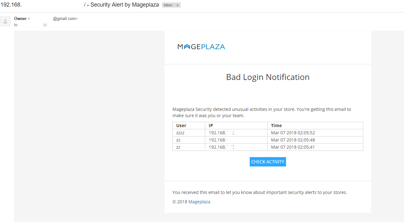 Magento 2 Security extension by Mageplaza gives store owners the ability to detect the IP addresses that are intentionally attacking their store at any given time. Therefore, they have timely measures to prevent this issue such as blocking those IP addresses or sending warning emails to store owners.