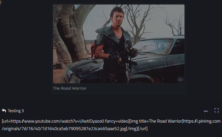 That said, if you have the flarum/bbcode extension, you can use fancy attribute of the URL tag to show videos or iframes on the fancyBox modal. They will be added to the fancyBox gallery of the post.
