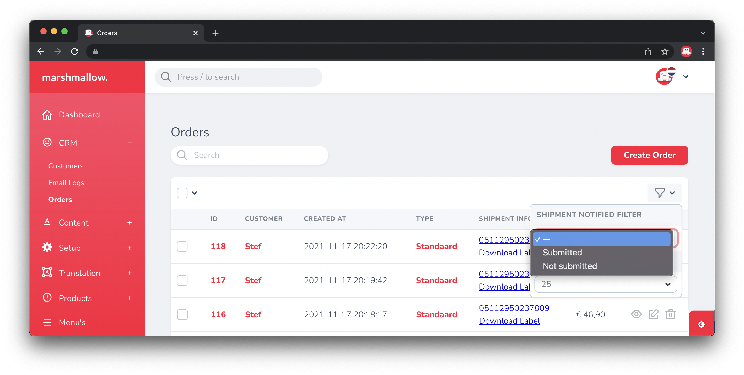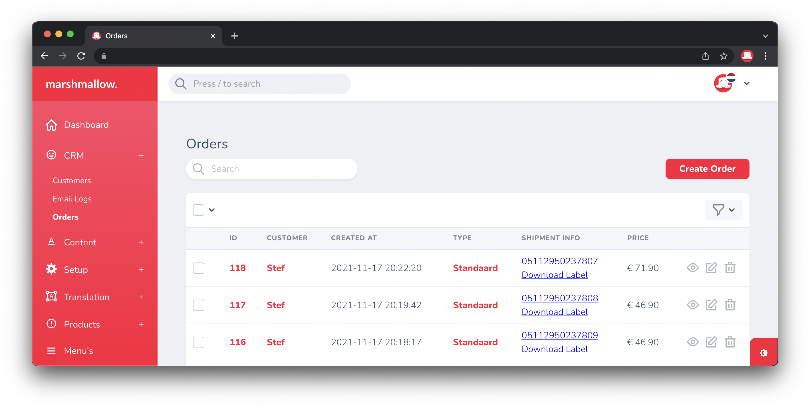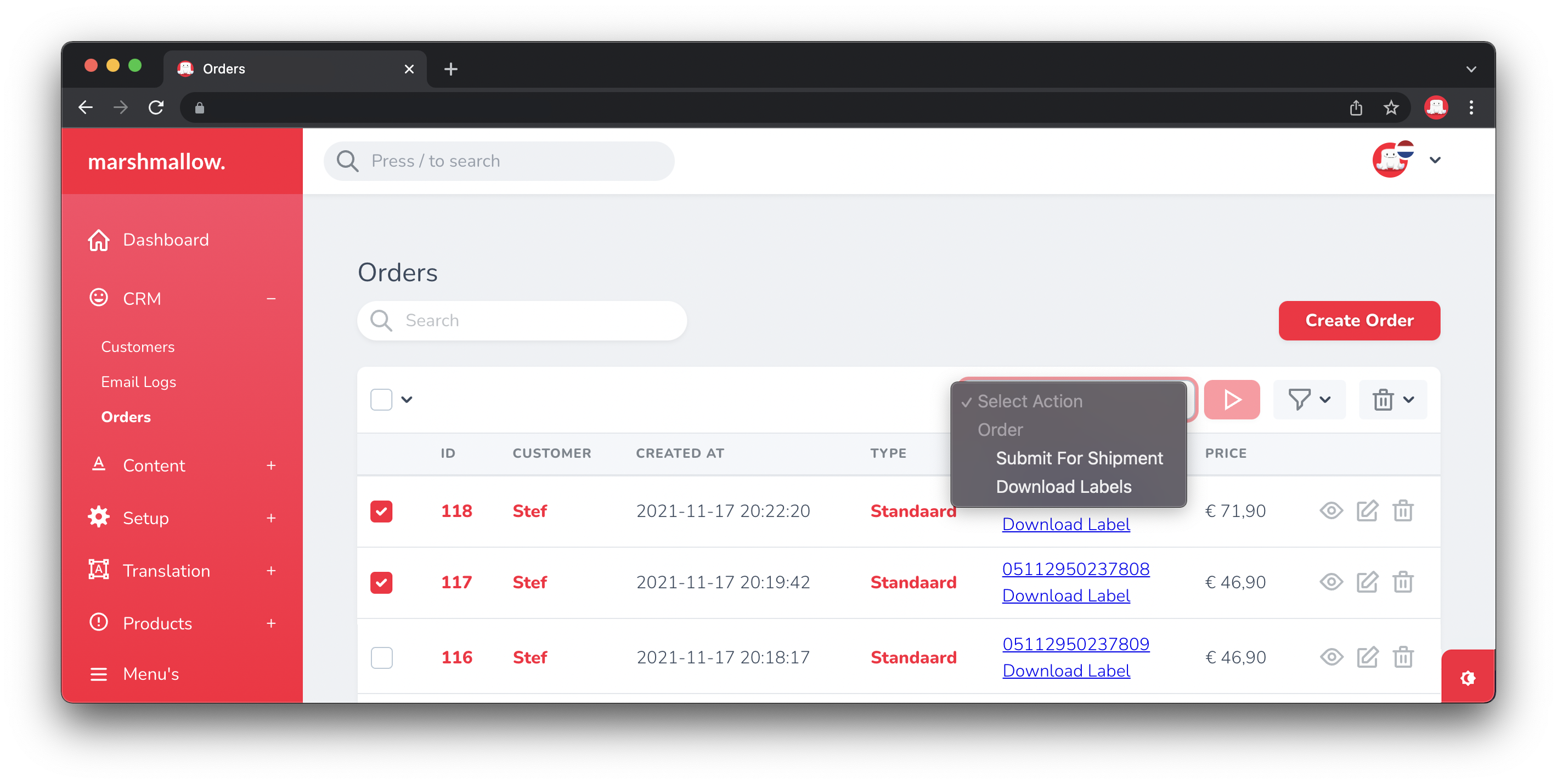 With this action you can download the label of a shipment. It is also possible to download the shipping labels of multiple orders at once.