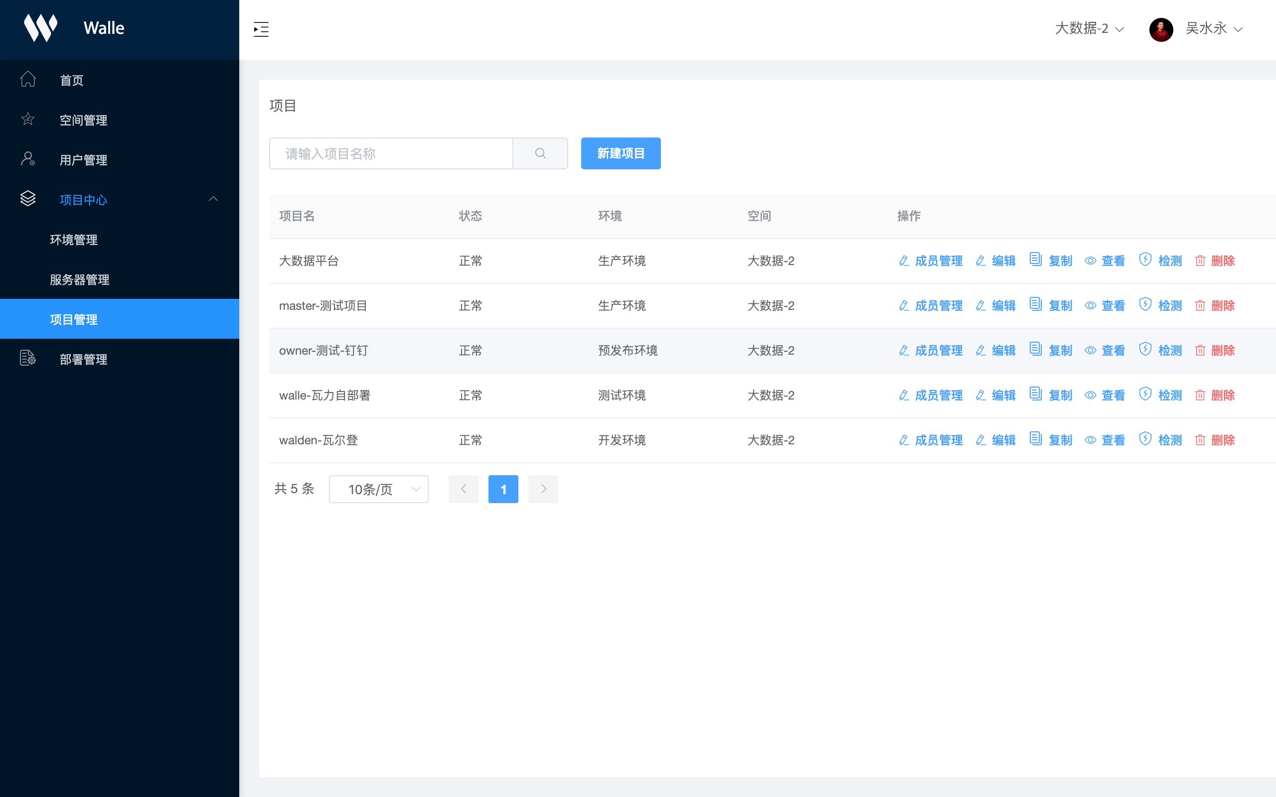 ,良心的惊喜 - 空间管理。意味着有独立的空间资源:环境管理、用户组、项目、服务器等