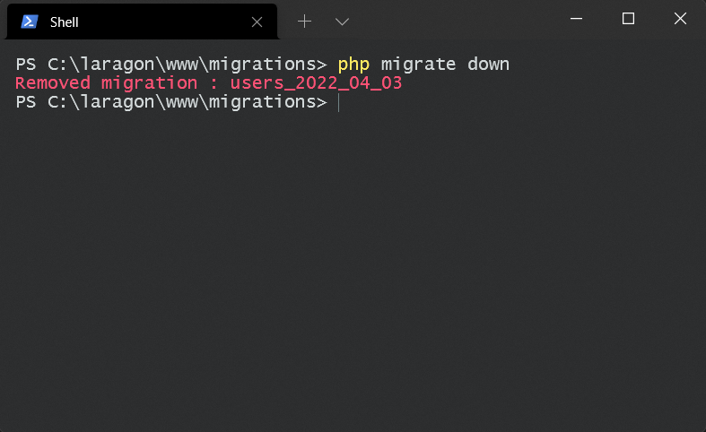 php migrate down