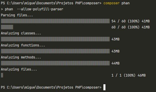 Mesmo realizando a instalação via composer require --dev phan/phan, não foi possível realizar a analise, ele retorna algumas mensagens como 'Warning: PHP Startup: Unable to load dynamic library 'ast.so', 'The php-ast extension must be loaded in order for Phan to work'. Para solucionar, foi necessário usar Phan 5 que depende da version PHP 7.2+ com a extensão php-ast (1.0.16+). Além disso, adicionei extension=ast.soa no php.ini. Encontre algumas dicas no git Nikita Popov, Nikita é contribuidor para o ecossitema PHP que é um dos responsáveis pela versão do php 7, fez parte da equite JetBrains.