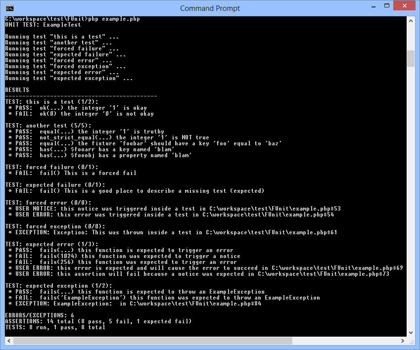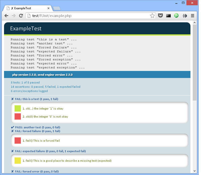 A simple test suite for PHP 5.3+, partially inspired by QUnit.