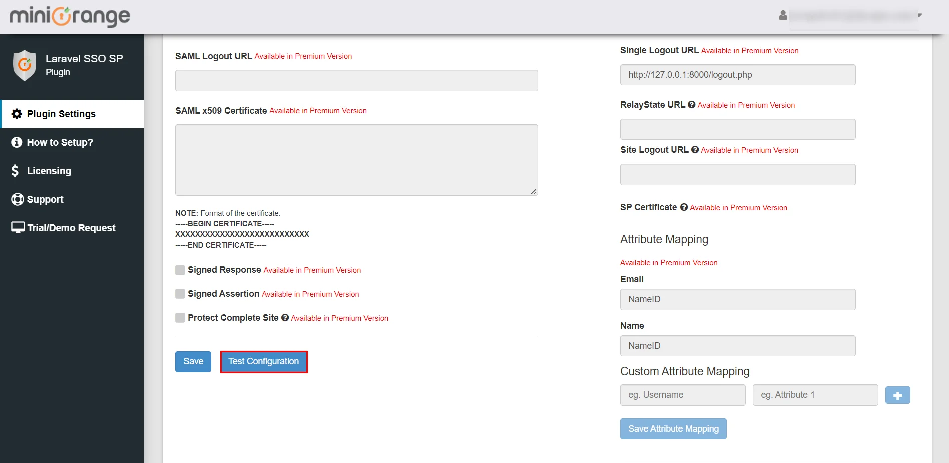 Laravel package for SAML Single Sign On (SSO). The package acts as a SAML Service Provider (SP). SAML Single Sign On (SSO) for Laravel allows users sign in to Laravel webapp with your SAML 2.0 compatible Identity Provider. We support all known IdPs - Google Apps, ADFS, Okta, miniOrange, OneLogin, Azure AD, Salesforce, Shibboleth, SimpleSAMLphp, OpenAM, Centrify, Ping, RSA, IBM, Oracle, Bitium, WSO2, NetIQ etc. SAML Laravel application acts as a SAML 2.0 Service Provider (SP) and securely authenticate users with your SAML 2.0 Identity Provider.