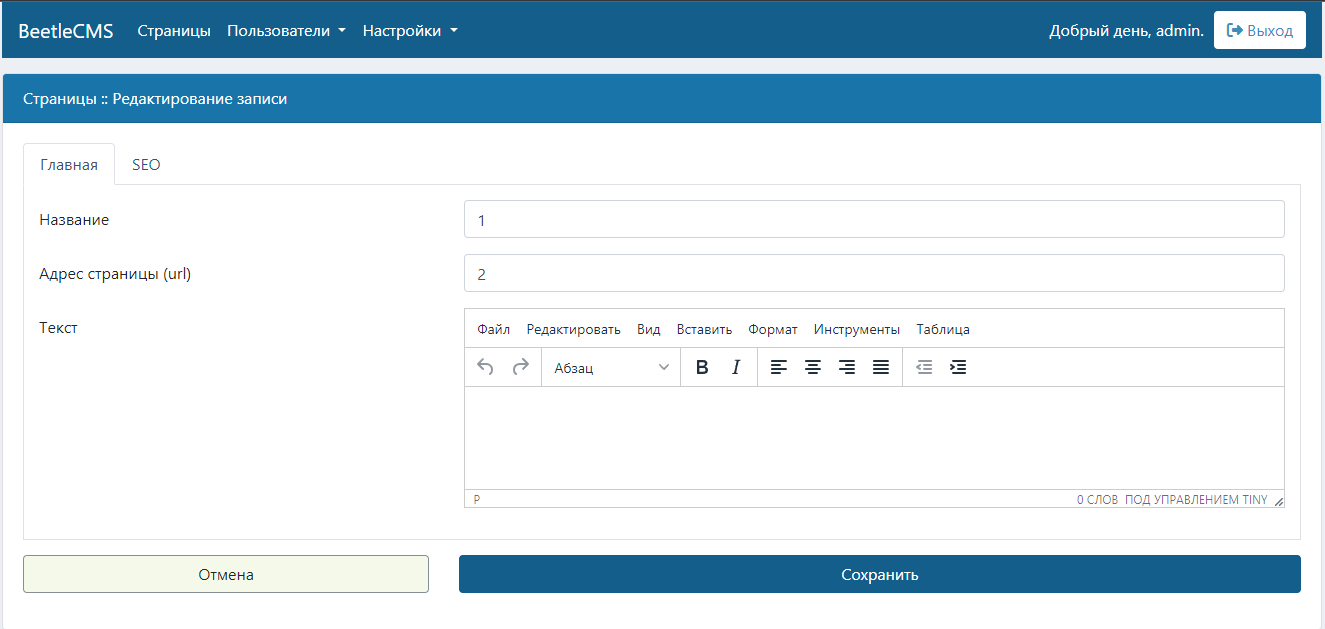 namespace App\BeetleCMS; use BeetleCore\Fields\HtmlField; use BeetleCore\Fields\TextareaField; use BeetleCore\Fields\TextboxField; use BeetleCore\Fields\UrlField; use BeetleCore\Validators\NoEmpty; use BeetleCore\Validators\Unique; class PageModel extends AdminModel { protected $table = "page"; public $modelName = "Страницы"; public $modelDescription = ""; public $positionKey = "position"; public $canAdd = false; public $canDelete = false; protected $fields = [ "name" => [ "name" => "Название", "type" => TextboxField::class, "validators" => [ [NoEmpty::class], [Unique::class] ], ], "link" => [ "name" => "Адрес страницы (url)", "type" => UrlField::class, "mask" => "/page/{url}", "validators" => [ [NoEmpty::class], [Unique::class] ], ], "title" => [ "name" => "title", "type" => TextboxField::class, "show" => false, "find" => false, "tab" => "SEO" ], "description" => [ "name" => "description", "type" => TextareaField::class, "show" => false, "find" => false, "tab" => "SEO" ], "keywords" => [ "name" => "keywords", "type" => TextareaField::class, "show" => false, "find" => false, "tab" => "SEO" ], "body" => [ "name" => "Текст", "type" => HtmlField::class, "show" => false ], ]; protected $settings = []; protected $links = [ //"colors.pages" => ["admin.color", "Цвета"], ]; }