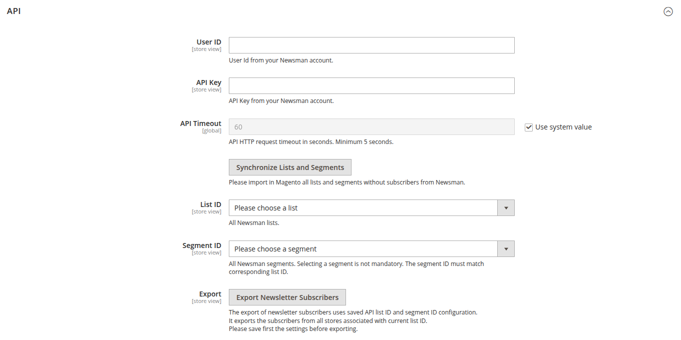 Go to Admin >Stores > Configuration > NEWSMAN > General > API