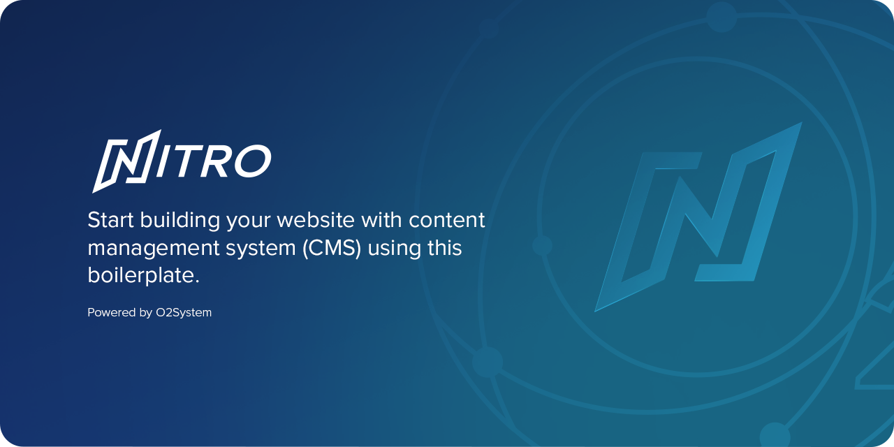 O2System Nitro Project Boilerplate is build for who wants to build a website project complete with content management system (CMS).