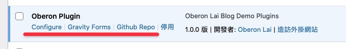 $config->addLink( 'my-plugin', // Your plugin's folder and main file name. array( array( 'type' => 'default', 'text' => __( 'Configure', 'plugin-name' ), ), array( 'type' => 'internal', 'text' => __( 'Gravity Forms', 'plugin-name' ), 'url' => 'admin.php?page=gf_edit_forms', ), array( 'type' => 'external', 'text' => __( 'Github Repo', 'plugin-name' ), 'url' => 'https://github.com/boospot/boo-settings-helper', ), ) );