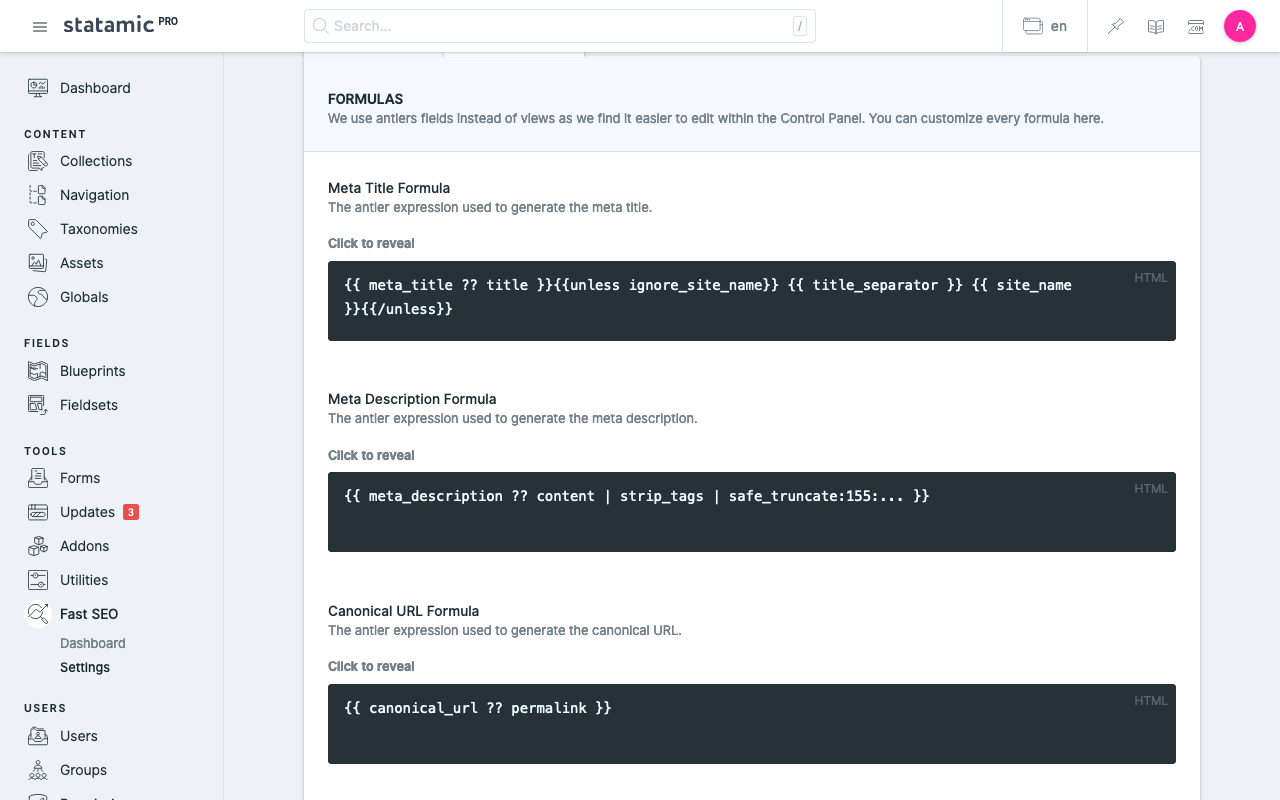 Secondly, because every computation is done using Antlers logic and conditions. The formula is even customizable from the settings. No need to overwrite any view or config. Everything can be done from the Control Panel.