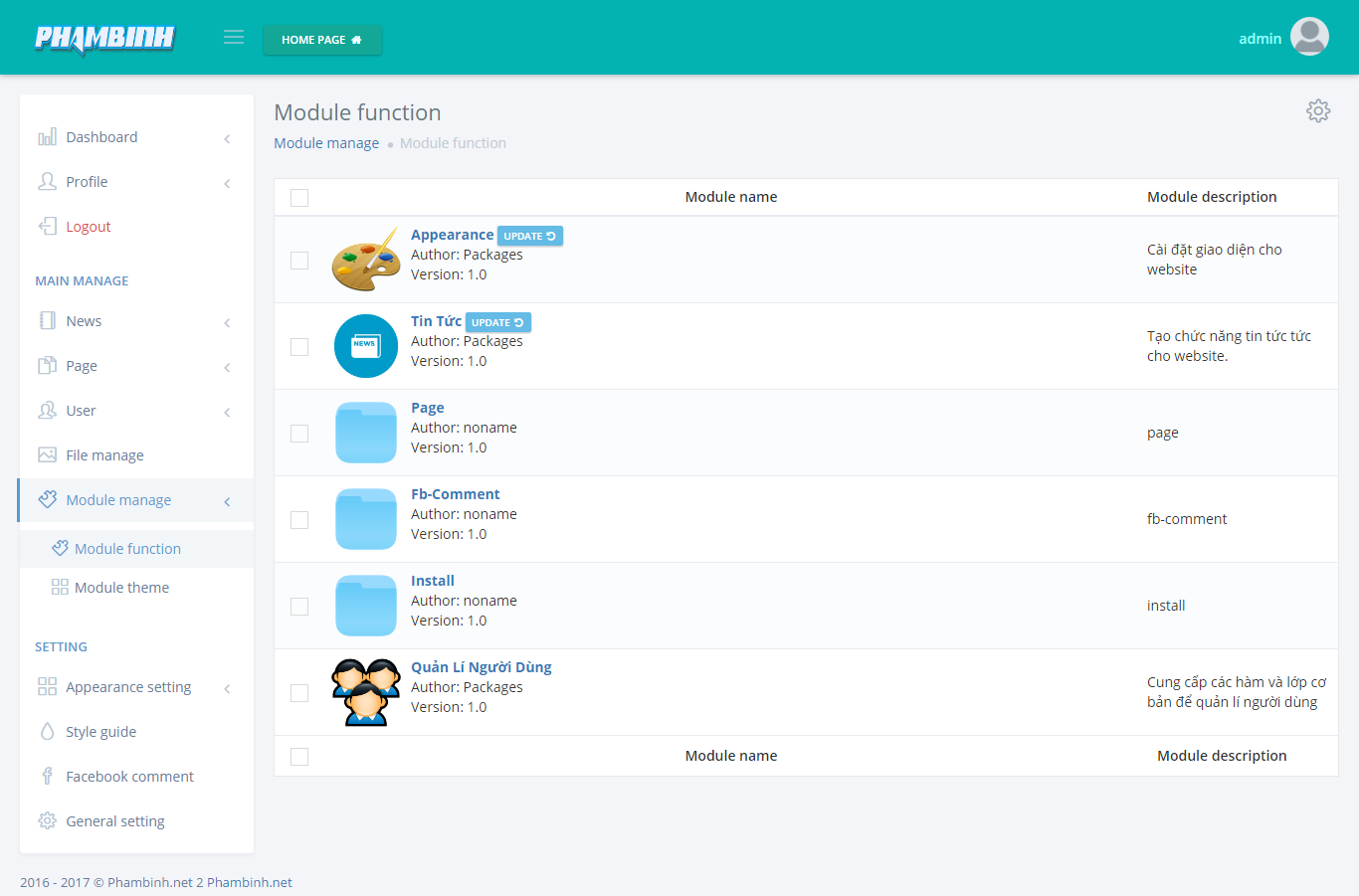 Phambinhcms đơn giản giống như một start project đối với dự án laravel framework. Nó cung cấp các chức năng cơ bản của một một dự án thông thường như: