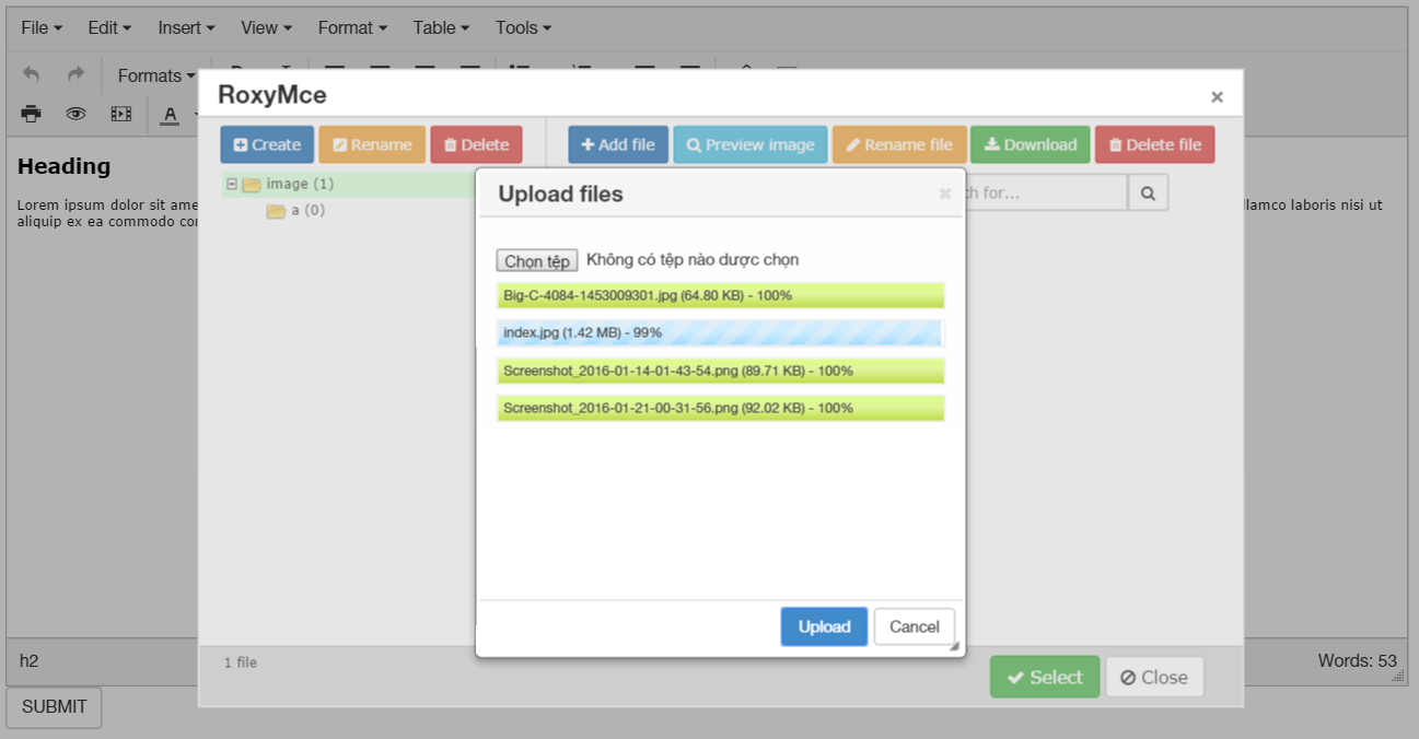 This allow to integrate TinyMce 4 with Roxy Fileman