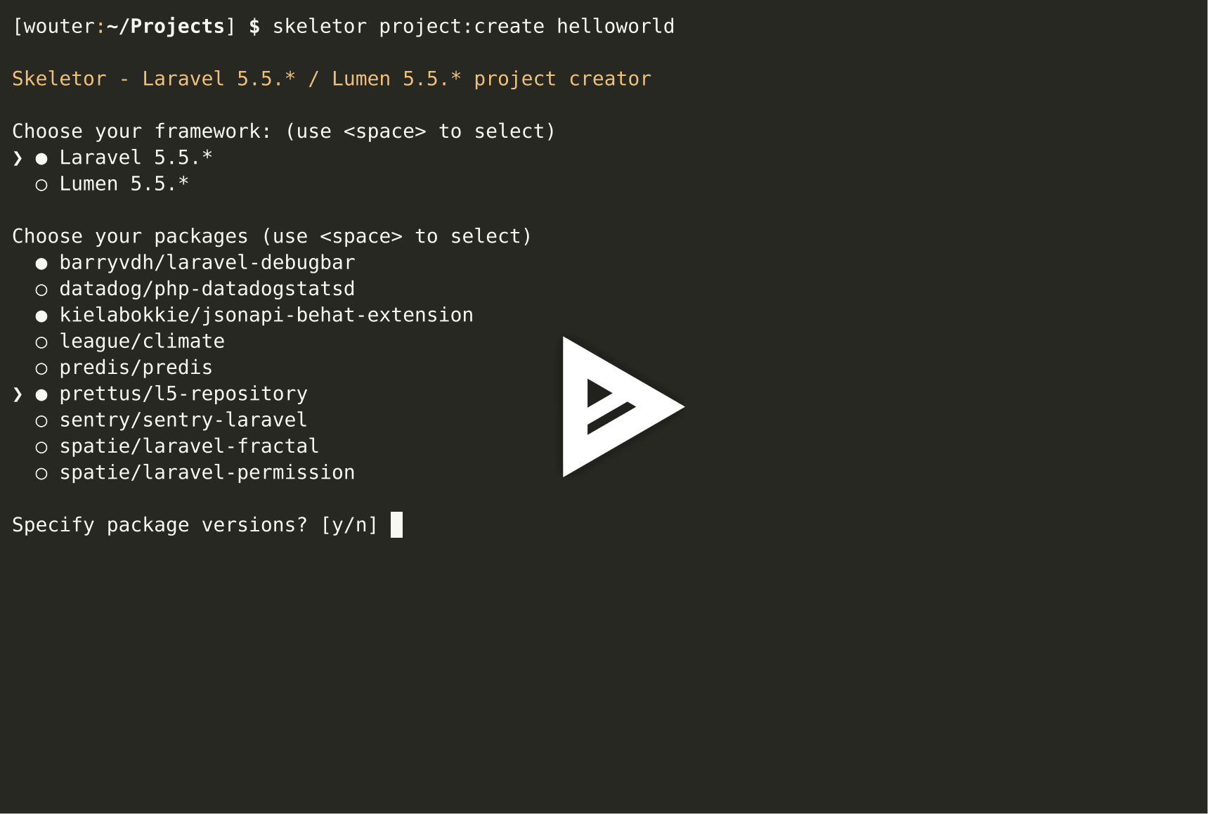 Skeletor is a PHP based CLI tool that has been built to take away the pain of setting up a base project skeleton for Laravel & Lumen projects. When creating a project using Skeletor you will be able to pick and choose from a set of packages and it automates a lot of the manual configuration like package providers, facades and environment variables. It also enables you to automatically install certain packages that you need for every project.