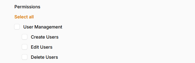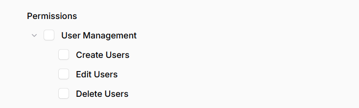 use Promethys\CheckboxTree\CheckboxTree; CheckboxTree::make('permissions') ->label('Permissions') ->options([ 'user_management' => [ 'label' => 'User Management', 'children' => [ 'create_users' => 'Create Users', 'edit_users' => 'Edit Users', 'delete_users' => 'Delete Users', ], ], 'content_management' => [ 'label' => 'Content Management', 'children' => [ 'create_posts' => 'Create Posts', 'edit_posts' => 'Edit Posts', 'publish_posts' => 'Publish Posts', ], ], ])