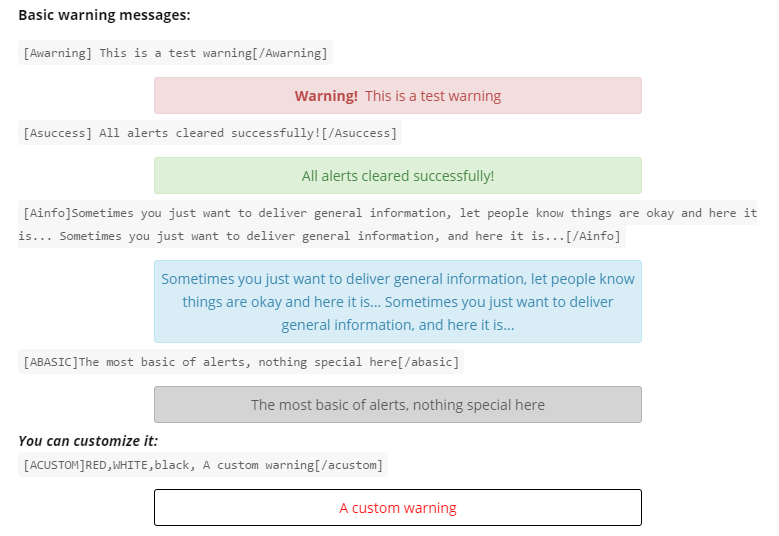 Add ALERTS, WARNINGS and other custom notifications to your Flarum posts.