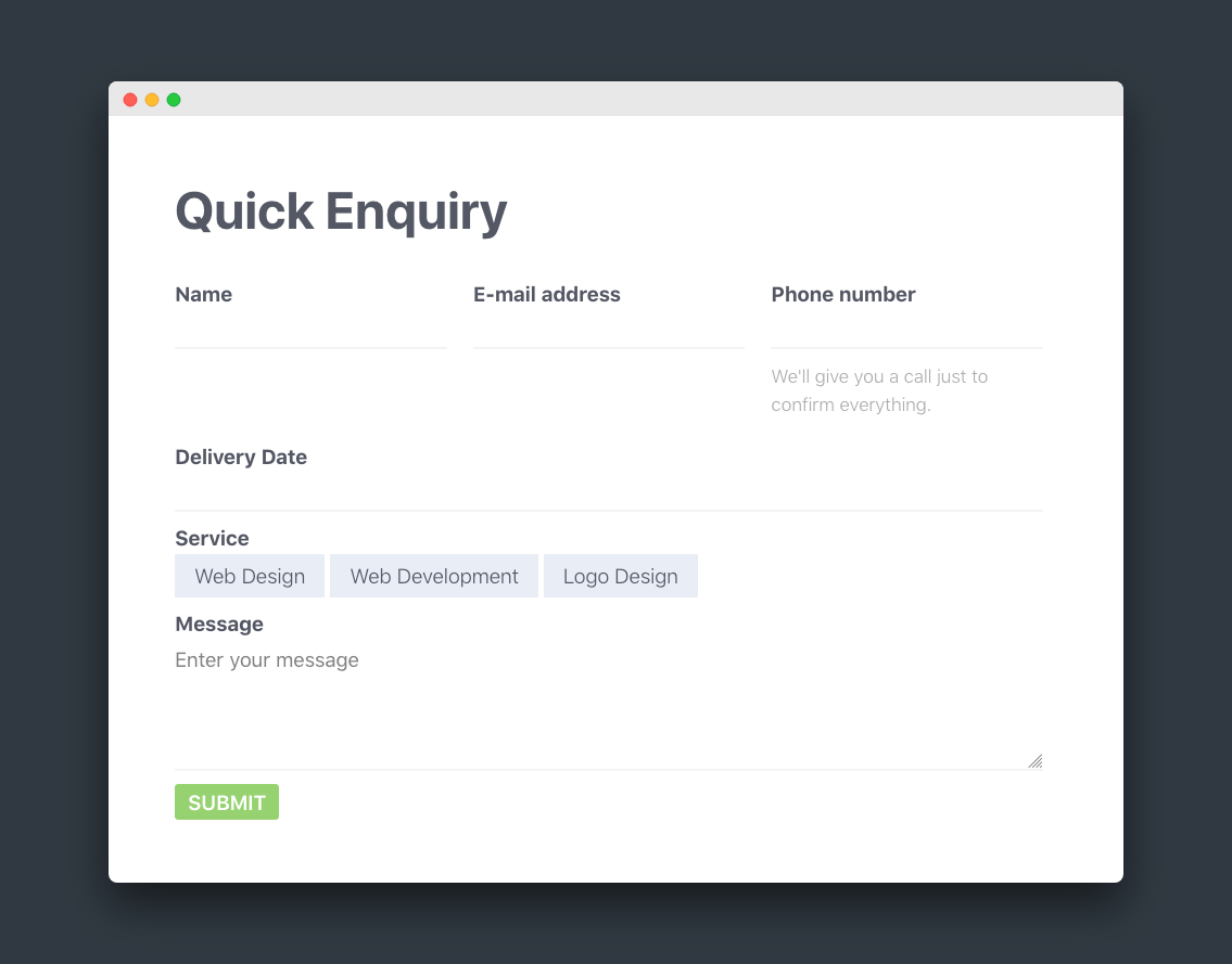 Also note that the example screenshot above includes custom styling, the Form plugin tries not to give you opinionated styles, that's on you as the designer.