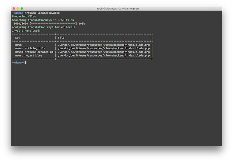 This package provides you with commands to analyze the translation keys used in your Laravel 5 application.