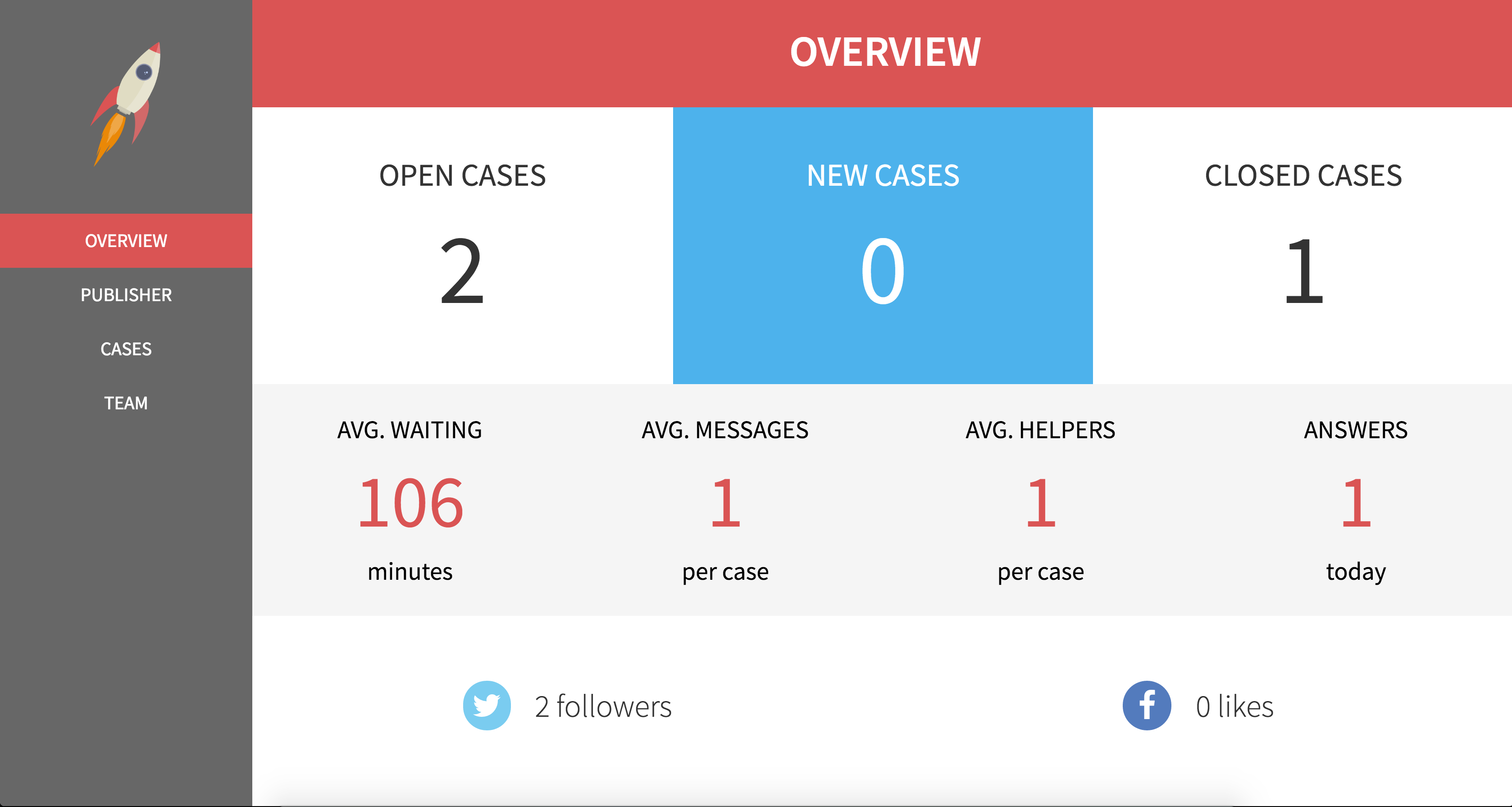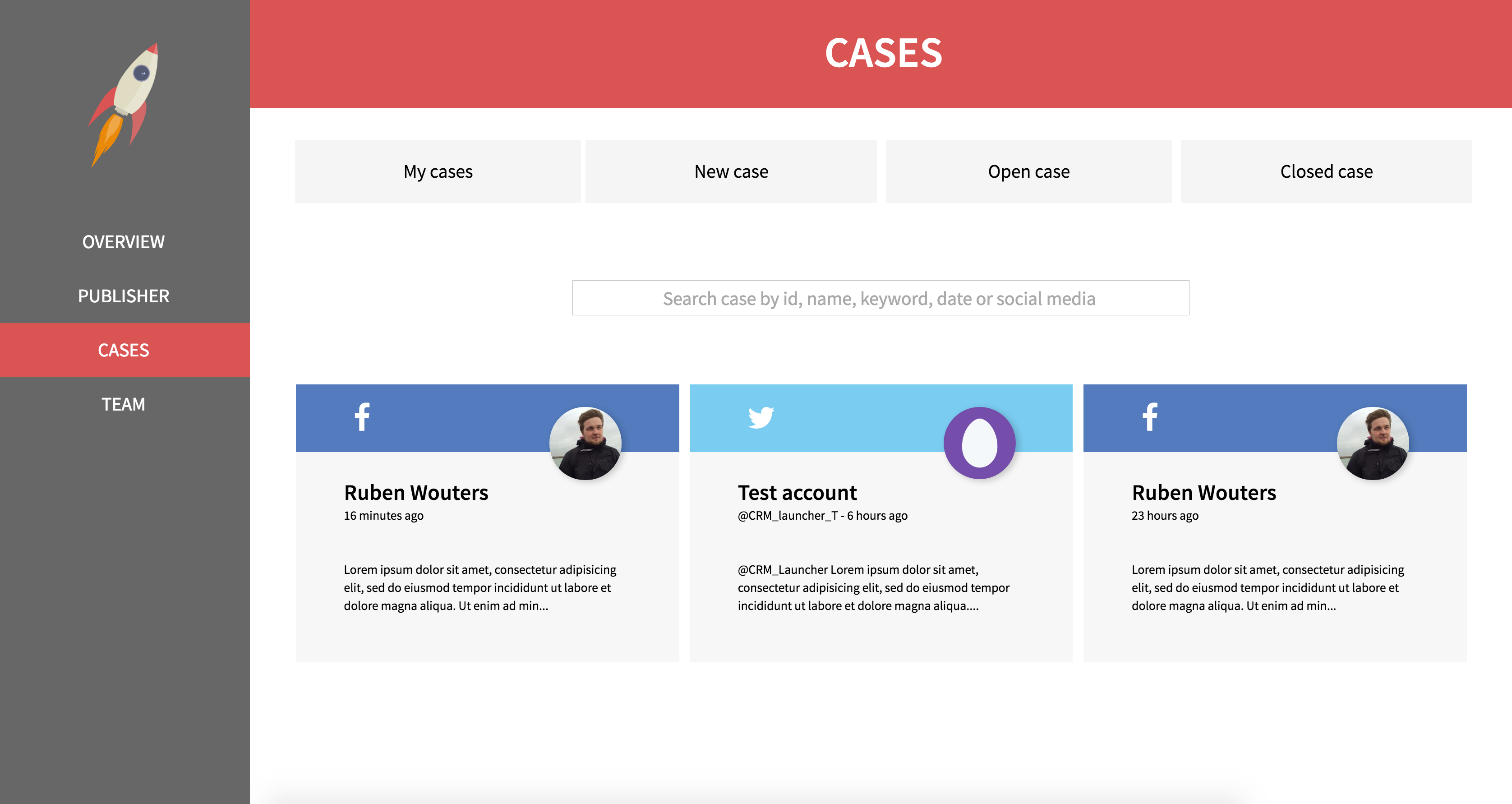 Everytime someone Tweets you or sends you a Facebook message, a "case" is created for that person. CRM Launcher provides a gorgeous overview of all cases you have. This way you can take care of your customers the way they deserve.