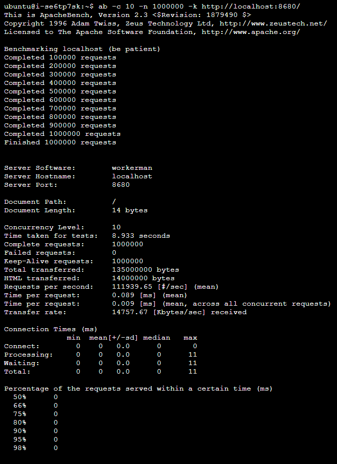 CLI 模式无业务压测 [workerman]