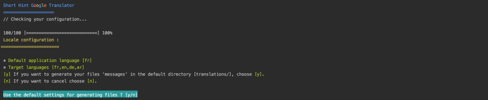 This bundle will allow you to translate your symfony application instantly and with a single command line in all languages supported by google.