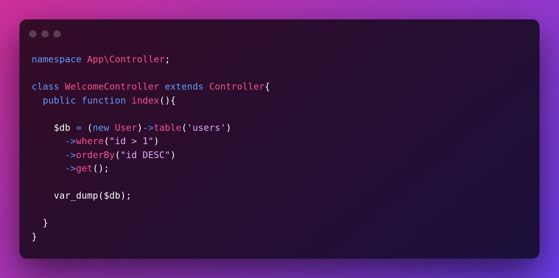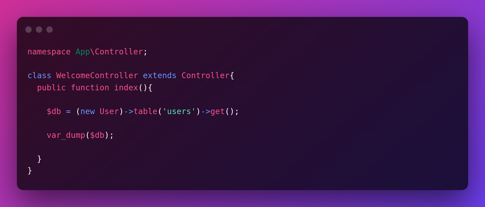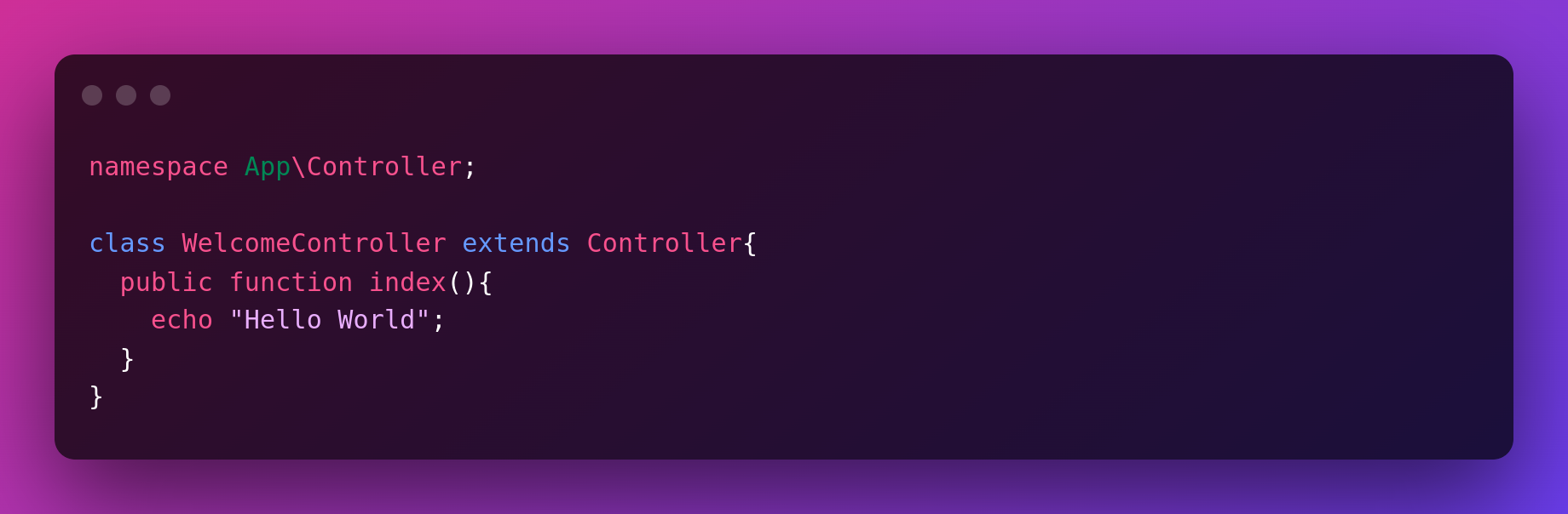 Yukarıda görmüş olduğunuz bir controller dir, aslında bu basit bir controllerdir. namespace adlandırıması PSR-4 den alınmadır.