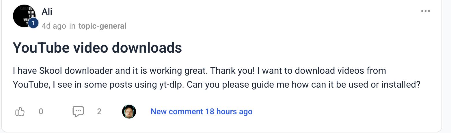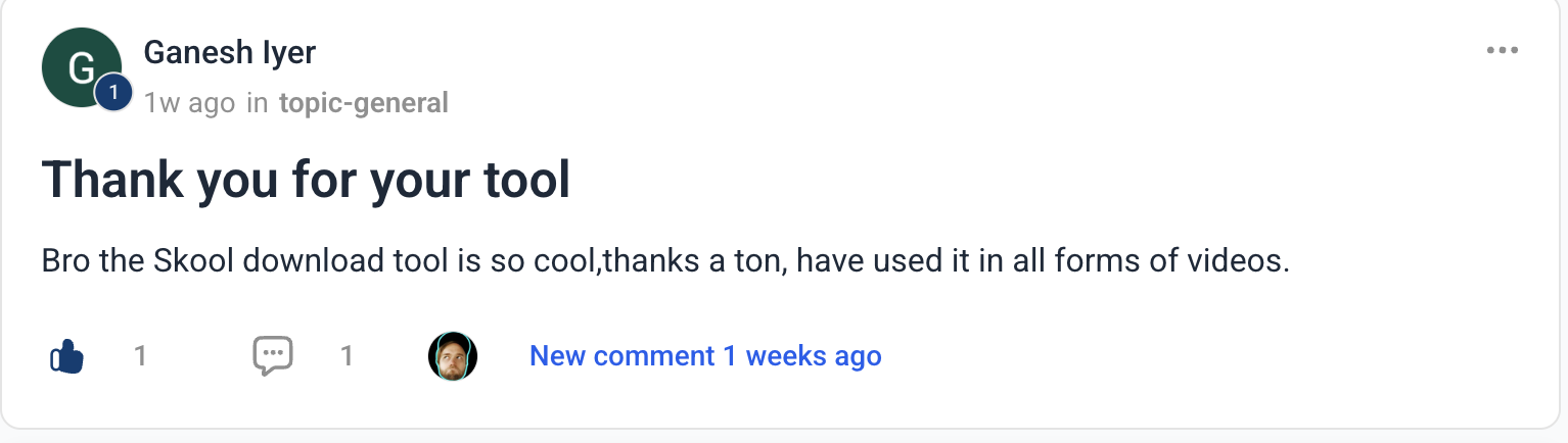 - Support for downloading videos across all Skool page types