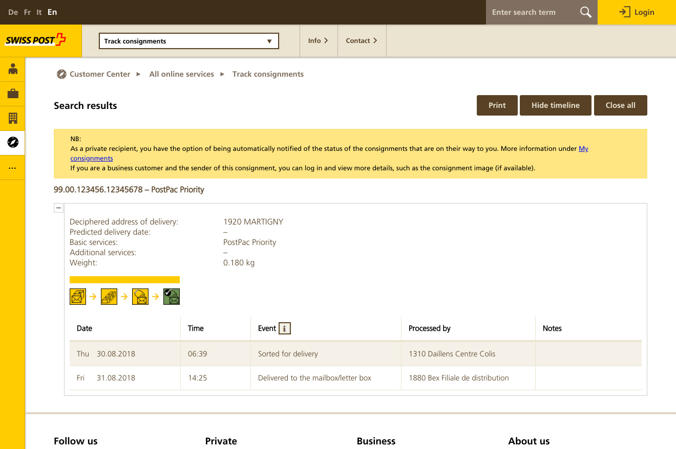 - Expand the section "Swiss Post – Economy", "Swiss Post – Priority" or "Swiss Post – Express"