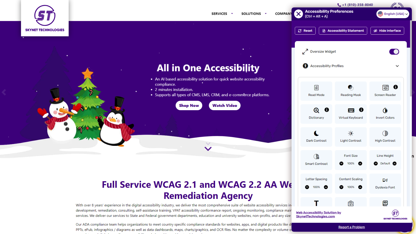 This lightweight and flexible widget is designed to improve your website’s compliance with international accessibility standards, including: