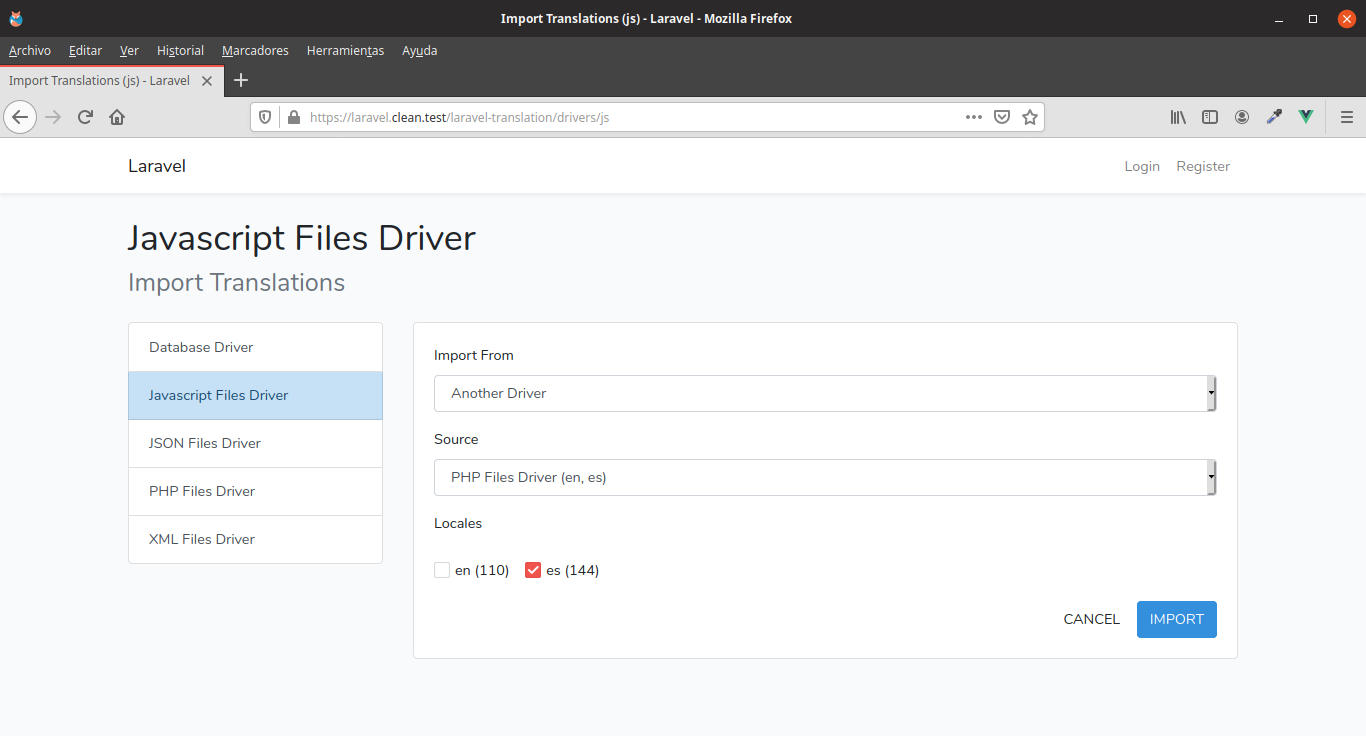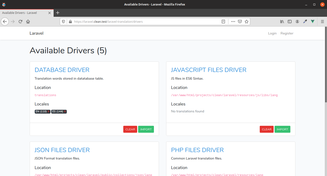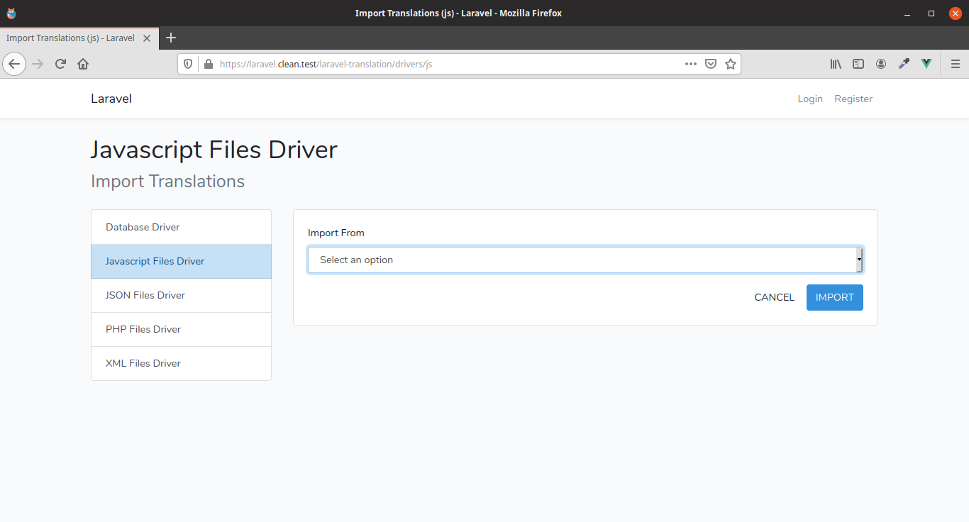 laravel-translation/drivers/{driver} route will allow to import translations to current {driver}.