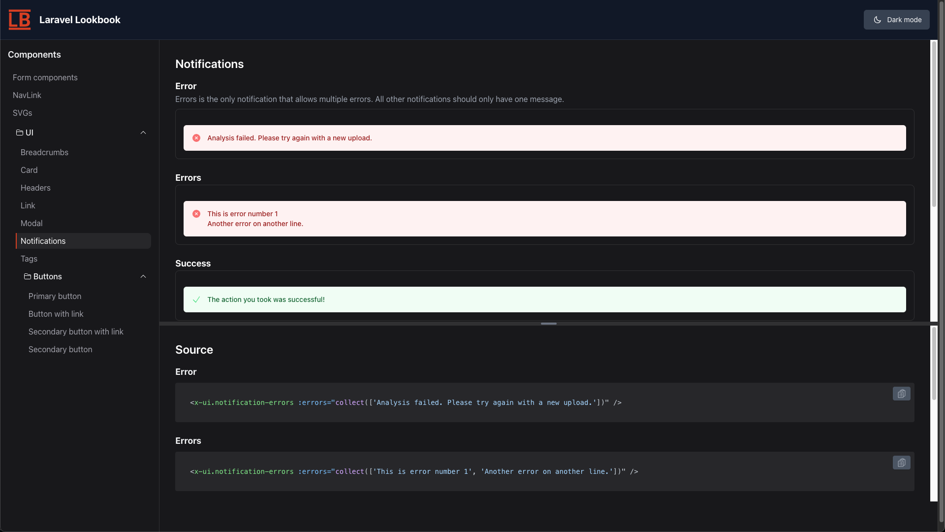 Laravel Lookbook is a component development environment for Laravel that helps you build, document, and organize your Blade components in isolation. Preview different component states, document usage examples, switch between light and dark modes to verify your components - all while working in your Laravel application. Inspired by the Ruby on Rails Lookbook gem, this package brings the same powerful component development workflow to the Laravel ecosystem.