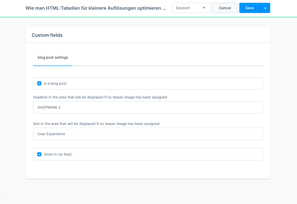- set custom meta information for the blog post if necessary, for example a custom SEO path to the blog post