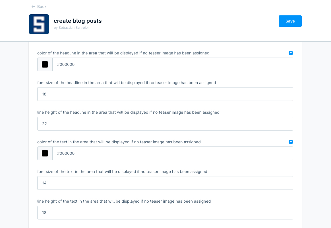 Possible Configurations for the area that will be displayed if no teaser image has been assigned