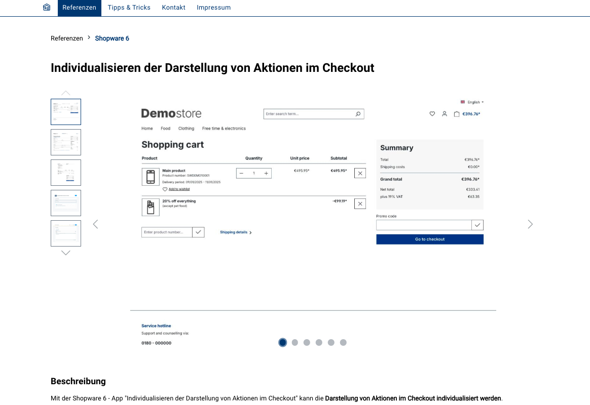 example 1: all images assigned to the blog post are displayed in an image gallery, followed by the content of the blog post, which is located in the field "Description"