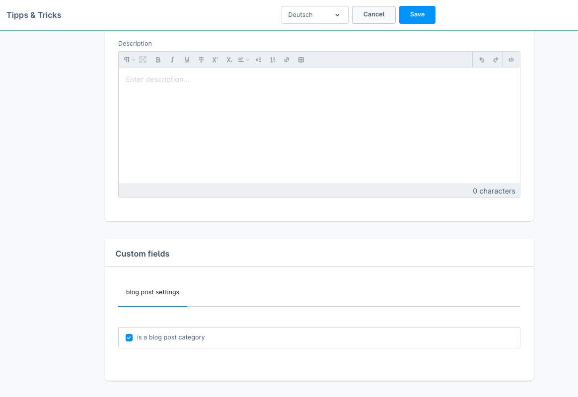 - activate the checkbox "is a blog post category" in the area "blog post settings"