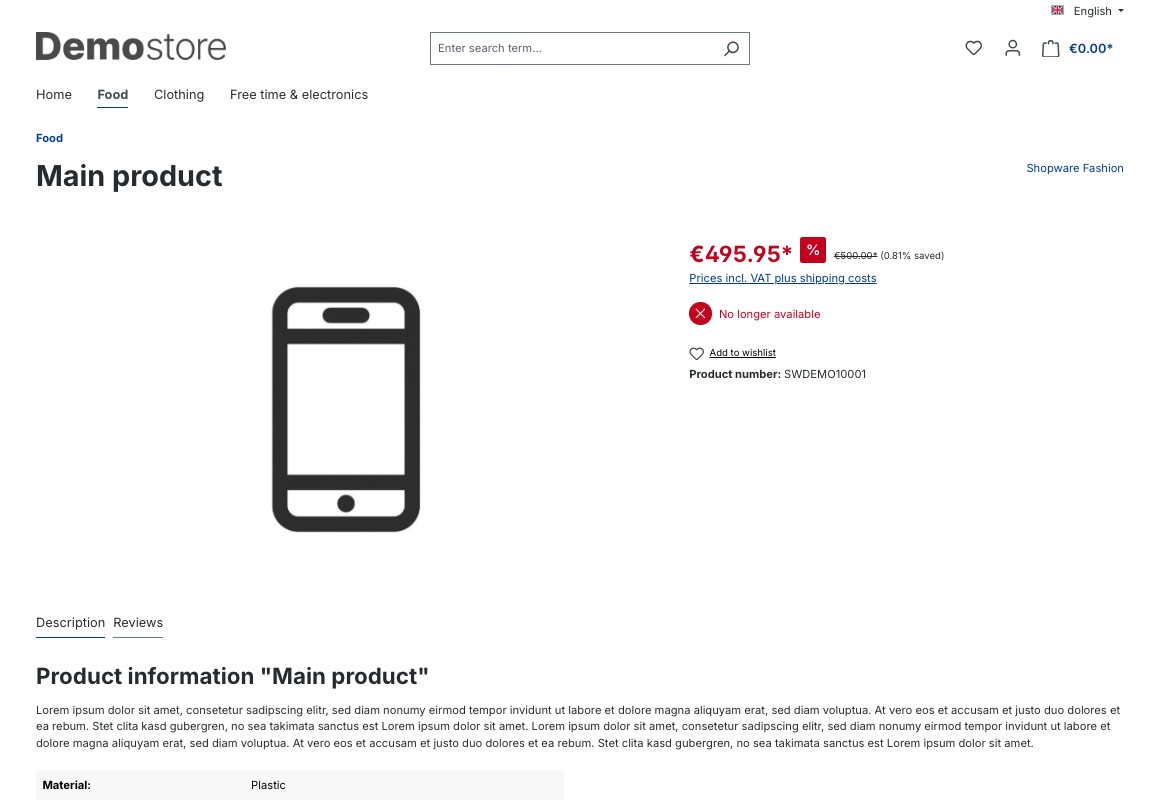 An extension to improve the display of the stock and delivery information on the product detail page. In the interest of accessibility, it is possible to display the availability indicator not only in color, but also via icons (checkmark, exclamation and X).