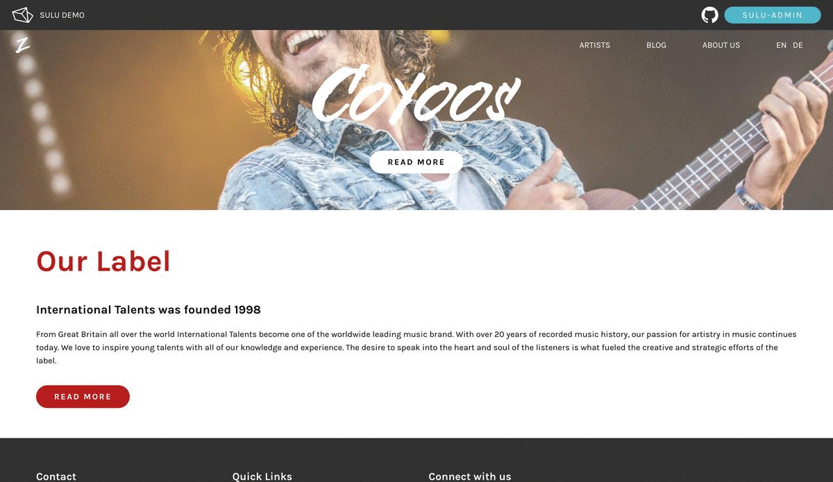This is the official Sulu Demo. It was created to show a simple implementation of an application made with Sulu and explains the basic steps.