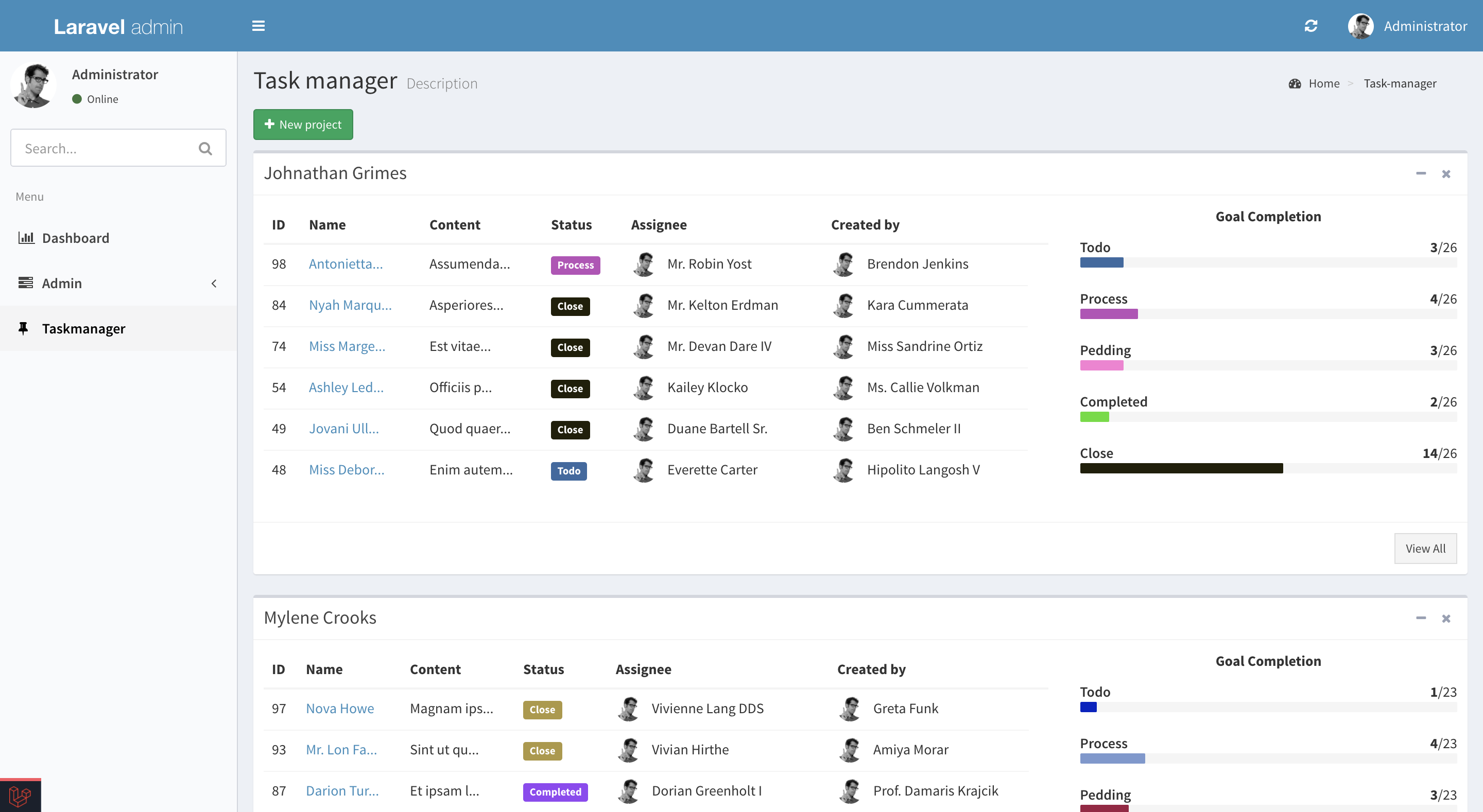 $ php artisan db:seed --class=TaskManagerSeeder