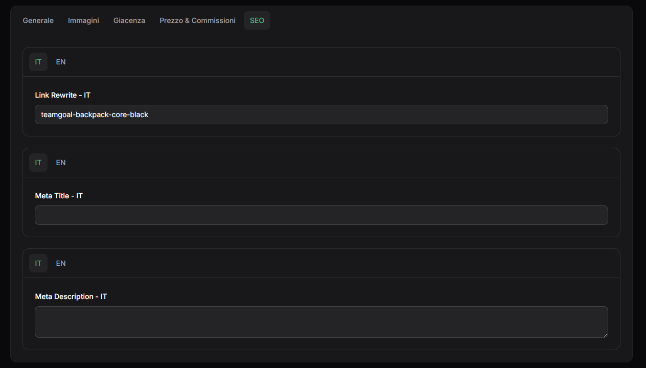 use Filament\Forms\Components\Textarea; use Filament\Forms\Components\TextInput; public function setTranslatableFilamentFields() { return [ TextInput::make('name') ->required() ->label('Name'), TextInput::make('link_rewrite') ->maxLength(128) ->label('Link Rewrite'), TextInput::make('meta_title') ->maxLength(128) ->label('Meta Title'), Textarea::make('meta_description') ->maxLength(512) ->label('Meta Description'), //... ]; }